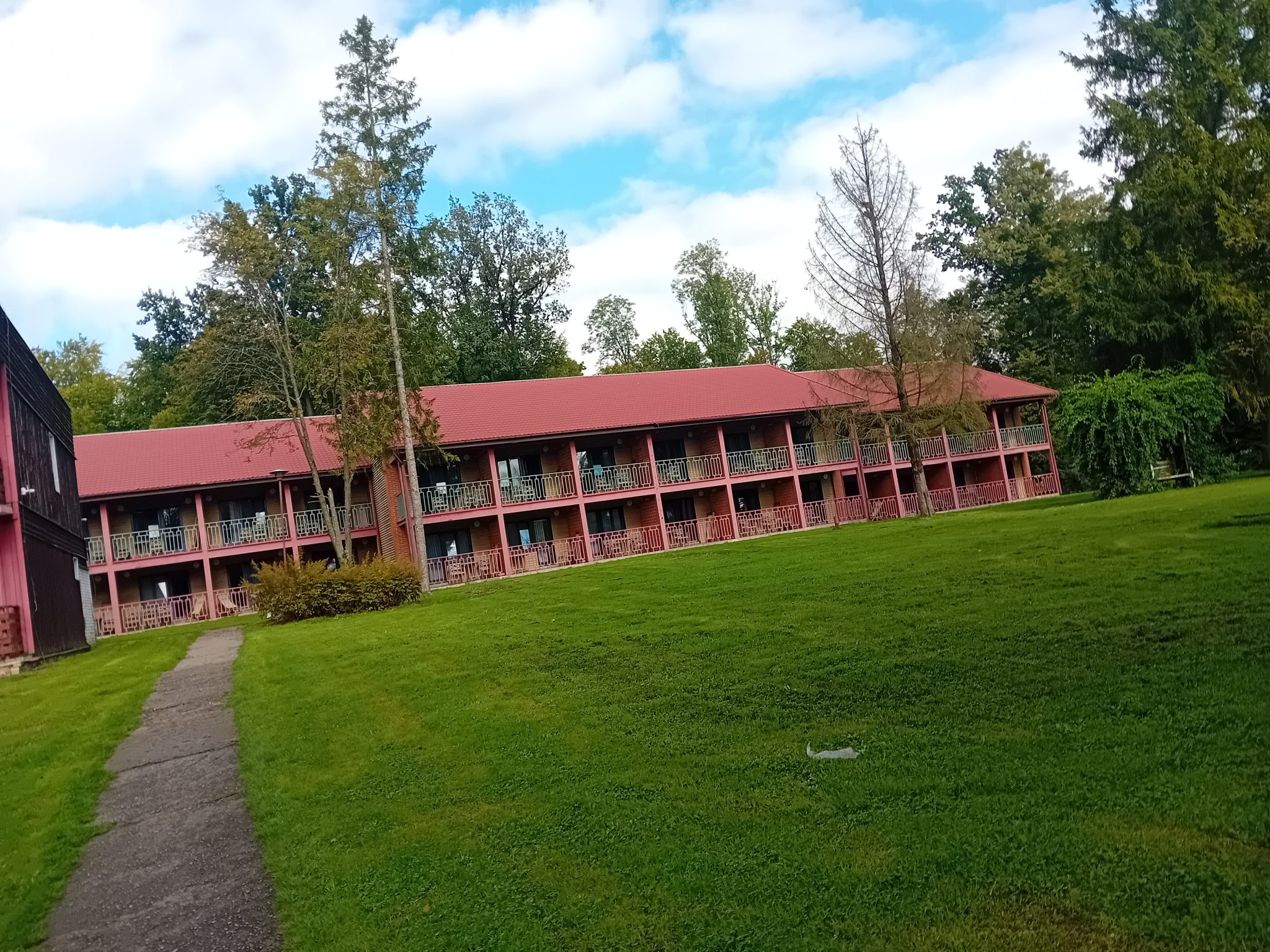 • Zakwaterowanie – zakwaterowanie w domkach drewnianych 4,5,6 osobowych, w każdym domku łazienka – wc i prysznic, w pawilonie w pokojach 2, 3 i 4 osobowych typu studio (w każdym pokoju łazienka – wc i prysznic).